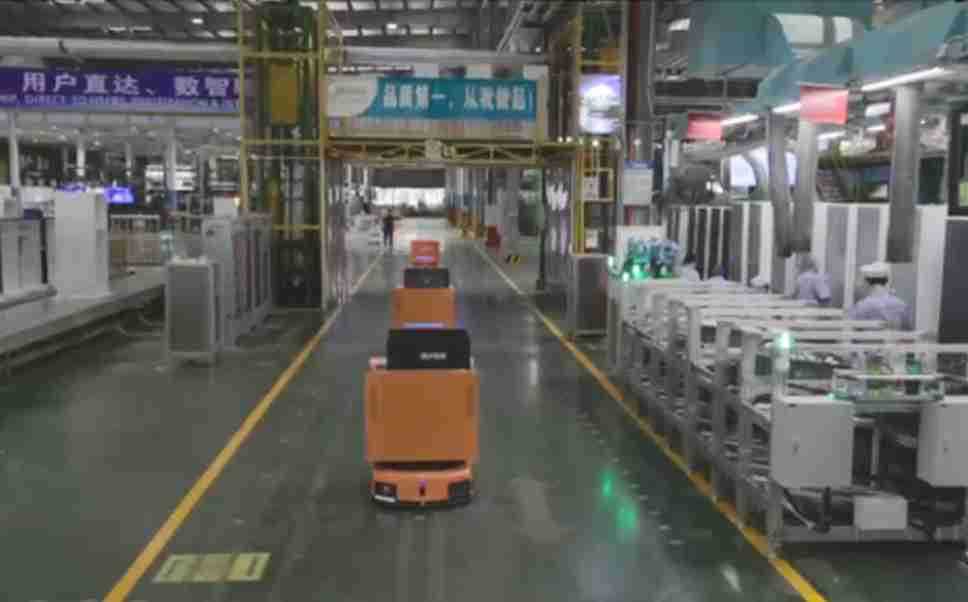 为车载冰箱物流配送打造的智能解决方案,,,,包含产中物流通过潜伏举升AMR搬运至线边,,,,产后成品物流智能仓储,,流程包含产中物流智能齐套入库,,,,线边安灯叫料AMR智能配送至线边,,,成品入库、、出库,,,通过无人堆高车机器人,,,智能仓储管理替代人工作业管理,,,,实现更高存储、、更高效率、、、更具柔性化的解决方案。。
